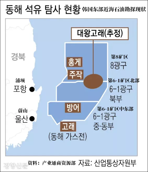 这一潜在油气田位于韩国东南部临海城市浦项迎日湾附近,也就是韩国“东海”(即日本海)第8矿区和第6-1矿区处。