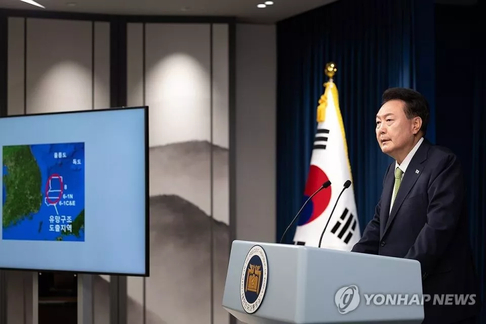 韩国《东亚日报》《中央日报》报道,尹锡悦在发布会上称,勘探结果经“世界最高水平研究机构和专家”复核,其油气储量最少可达35亿桶,达140亿桶的可能性也“非常高”,估计其中四分之三是天然气,四分之一是原油,“世界顶级能源开发企业也已经表现出了兴趣”。