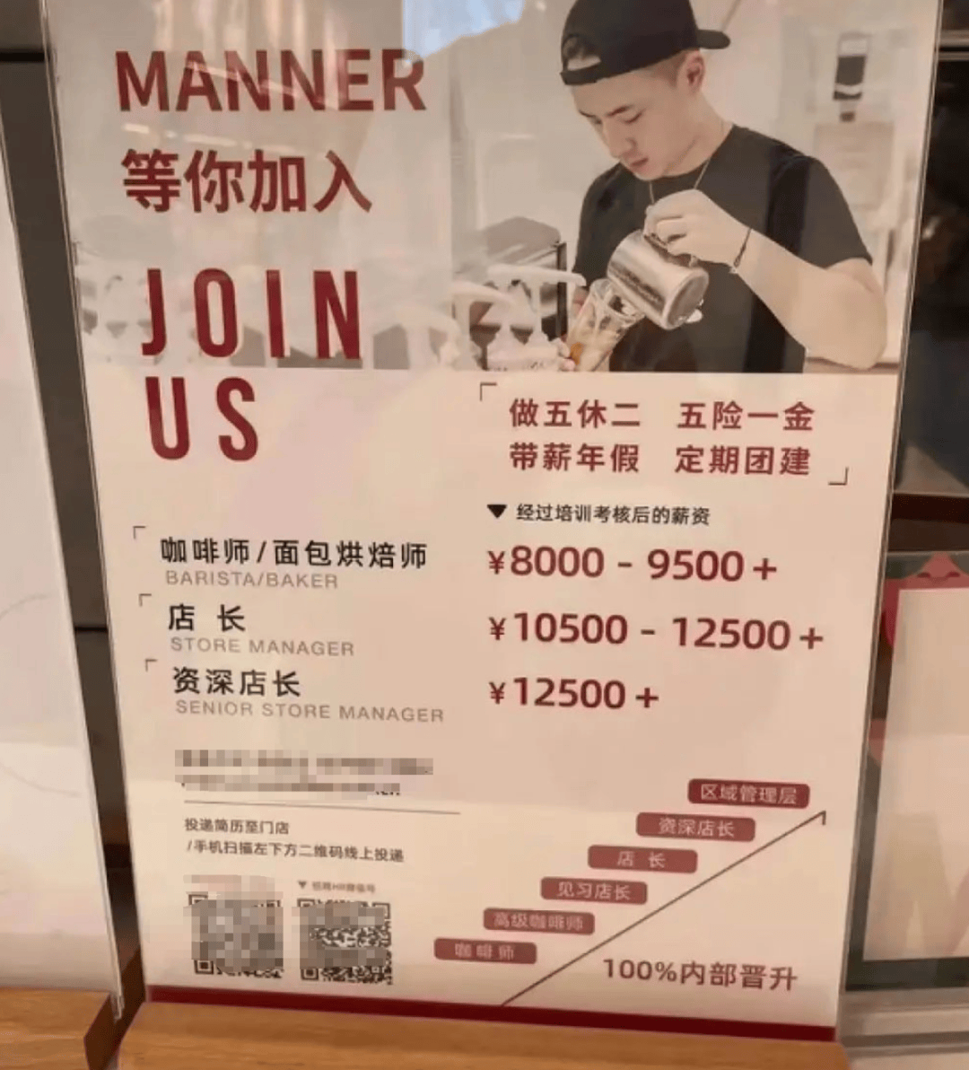 之前曾有报道称,Manner咖啡师的工资在同类连锁品牌中属于较高的一档。