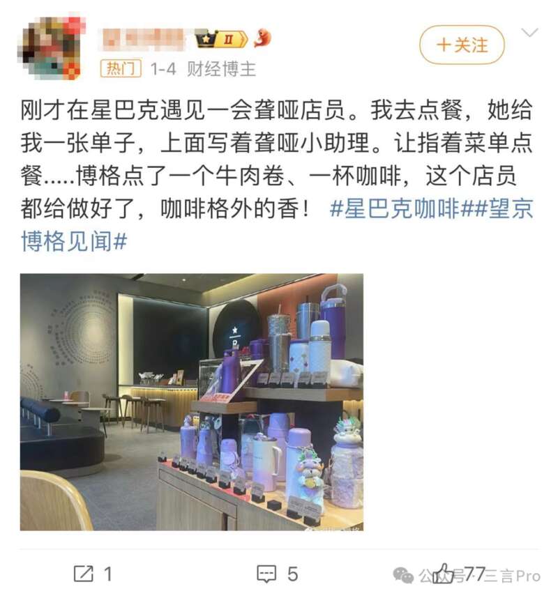 也有网友指出,聋哑人不适合点单,Manner一个店基本上就一个员工,又要做咖啡又要点单又要安抚客户,是有沟通需求的,这种情况还找聋哑人来,不合适。