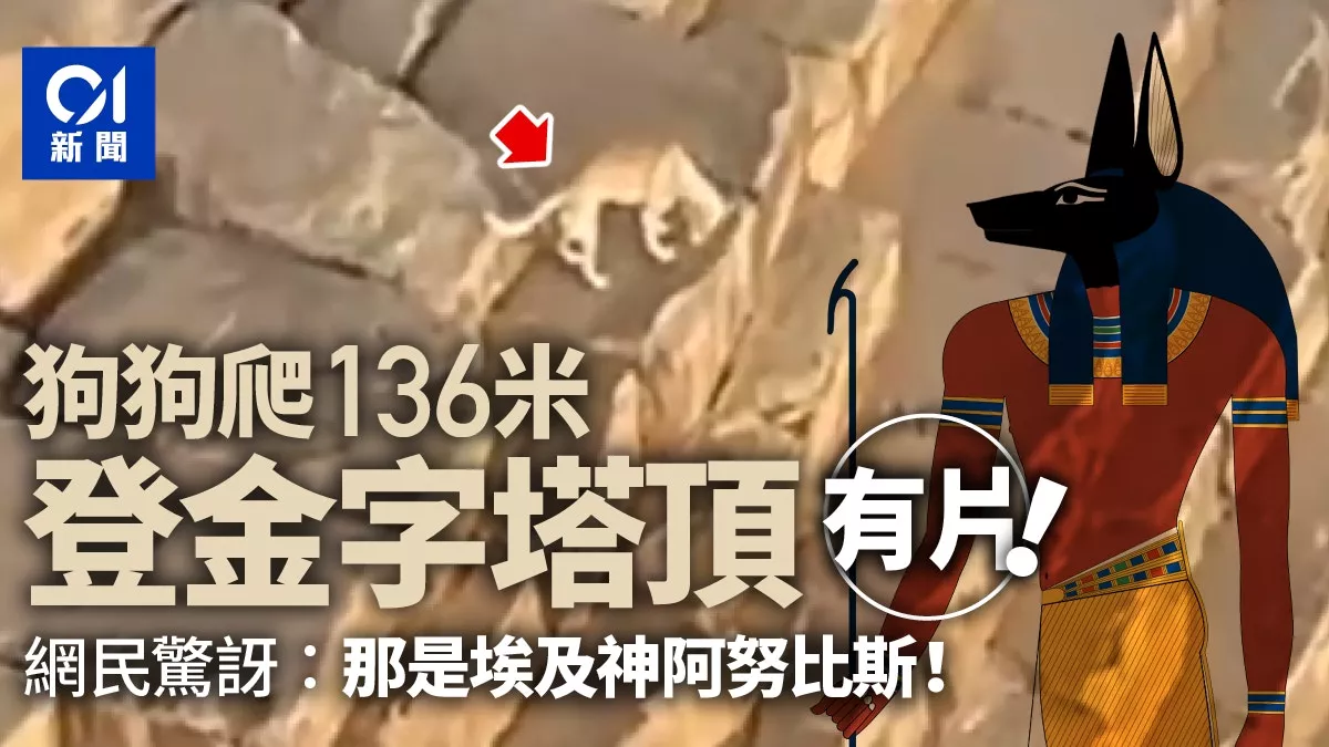 美國滑翔傘運動員Marshall Mosher在10月15日於社交平台發布一條視頻,其中顯示他自高空飛越吉薩大金字塔群(Great Pyramid of Giza)附近時,發現有狗只登頂,不畏高空玩耍嬉戲。有網民留言指,這不是普通的狗,而是死者來世的指引者和陵墓的守護者、埃及神阿努比斯(Anubis)。