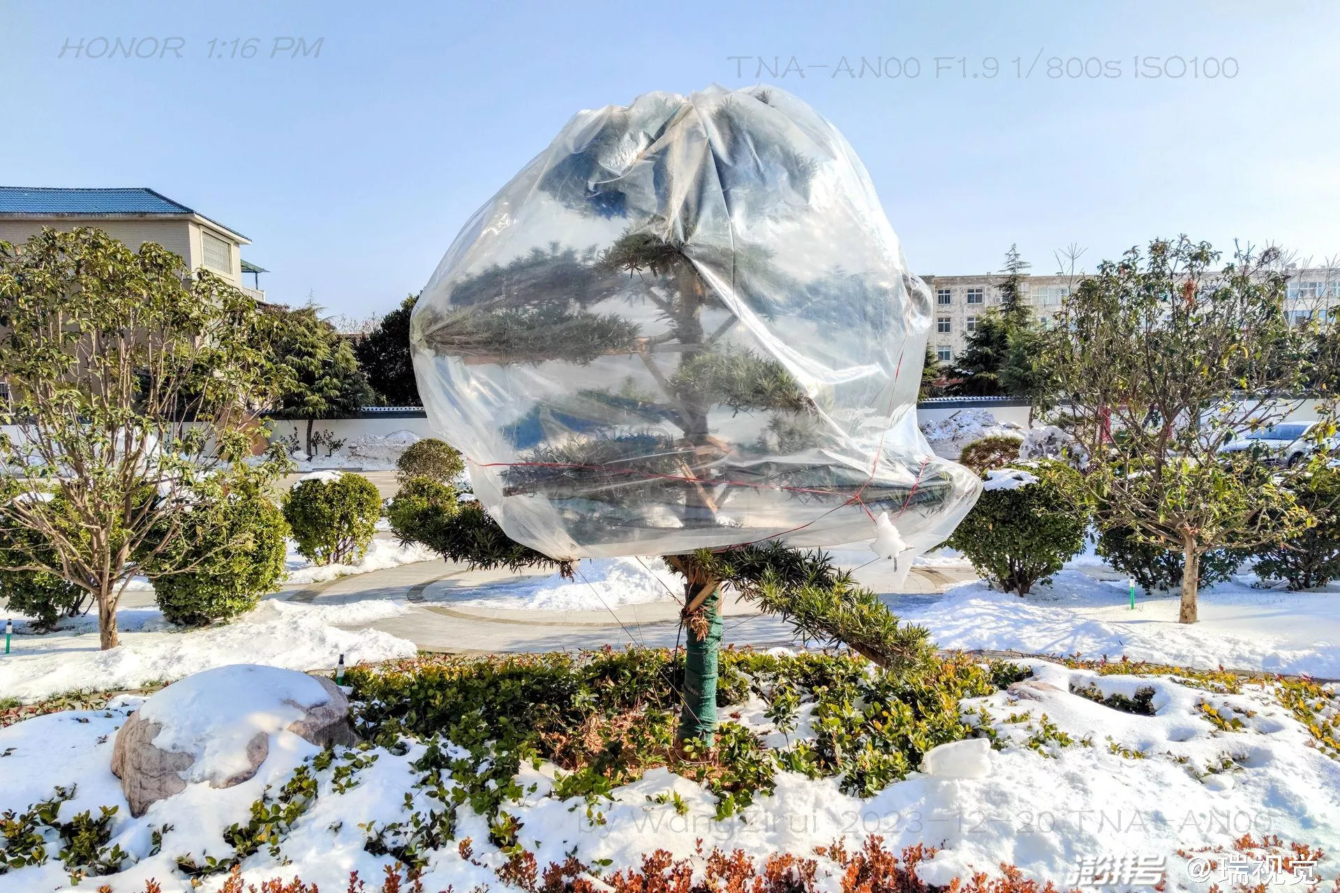 有了塑料袋“棉衣”的呵护,这些树木就可以顺利度过寒冷的冬天了。再过两三个月,它们就会吐绿开花,给人们带来一个生机盎然的春天。