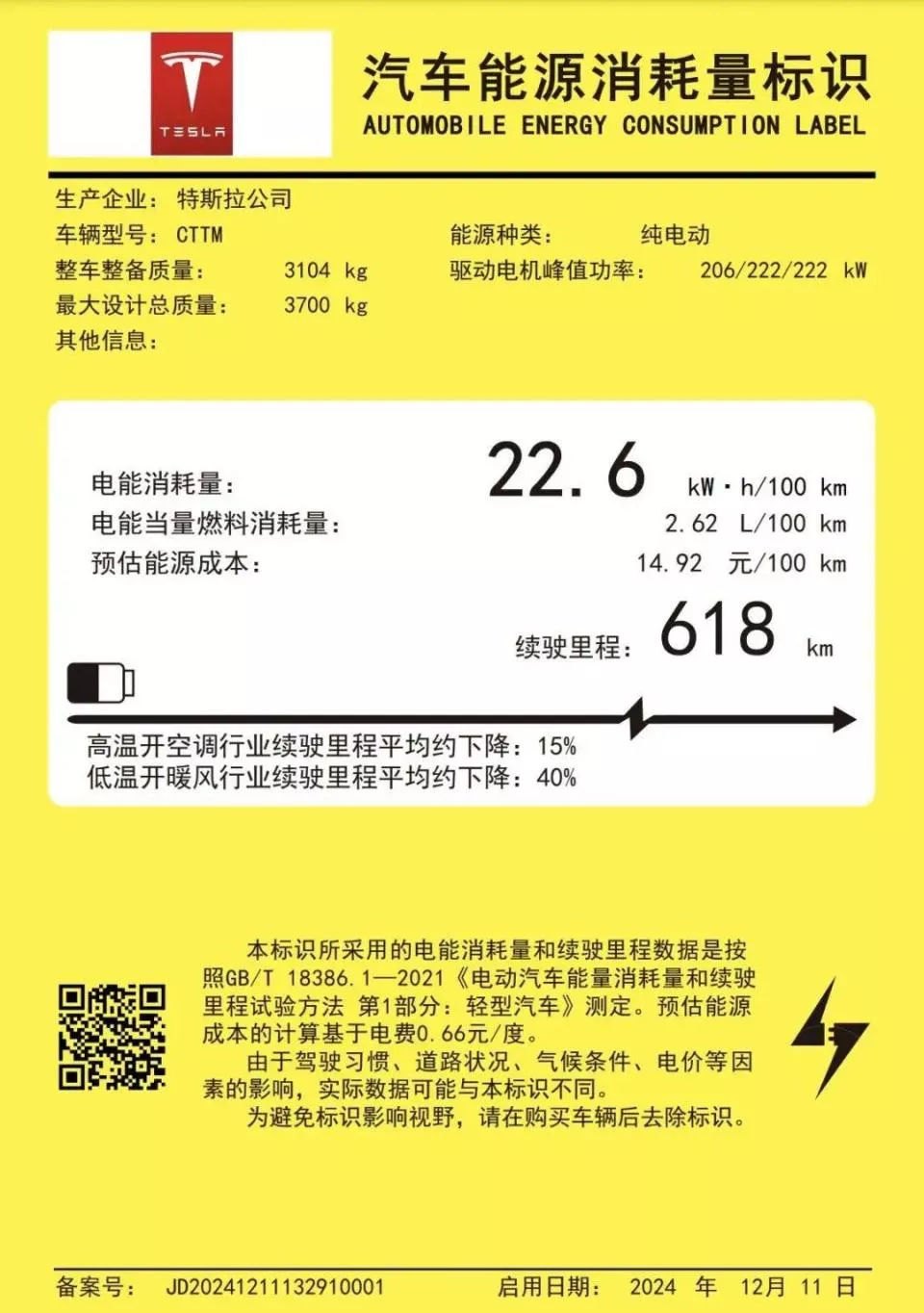 至于它的续航里程,特斯拉美国官网换算过来的数据是 515km,工信部的数据为 618km。