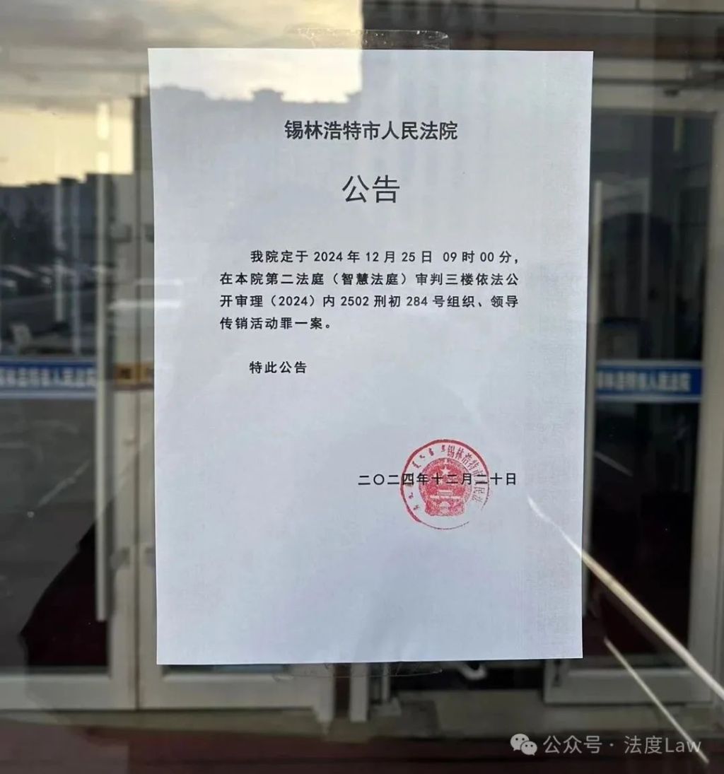 12月25日上午,任博等人涉嫌组织、领导传销活动罪一案,也叫学力星球案,在内蒙古锡林浩特市法院第三次公开开庭审理。