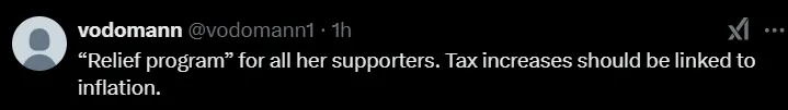 “她这是在为她的所有支持者提供救济吧!加税应与通货膨胀挂钩。 “