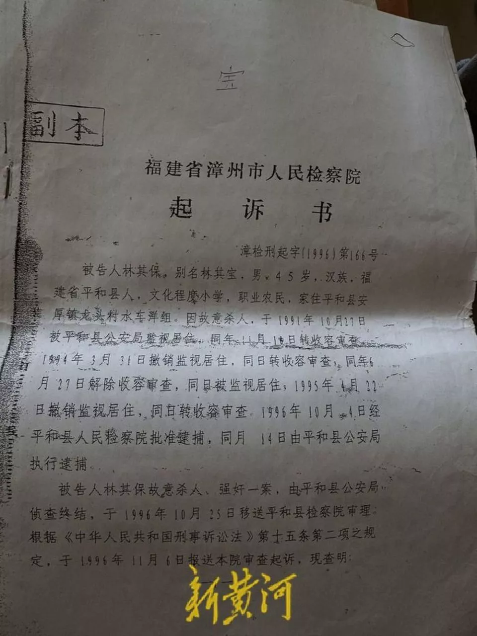 该案自1991年底由公安机关第一次向检察机关发出提请批准逮捕书开始,经历过多次退回补充侦查。1996年10月,平和县人民检察院最终对林其保下达了批准逮捕决定书。11月,福建省漳州市人民检察院向漳州市中级人民法院提起公诉。检察院在起诉书中,对阿珠的死亡描述变为:林其保先对阿珠实施强奸,后用双手卡住阿珠的脖子致使其休克,随后又扼死了两个小孩。