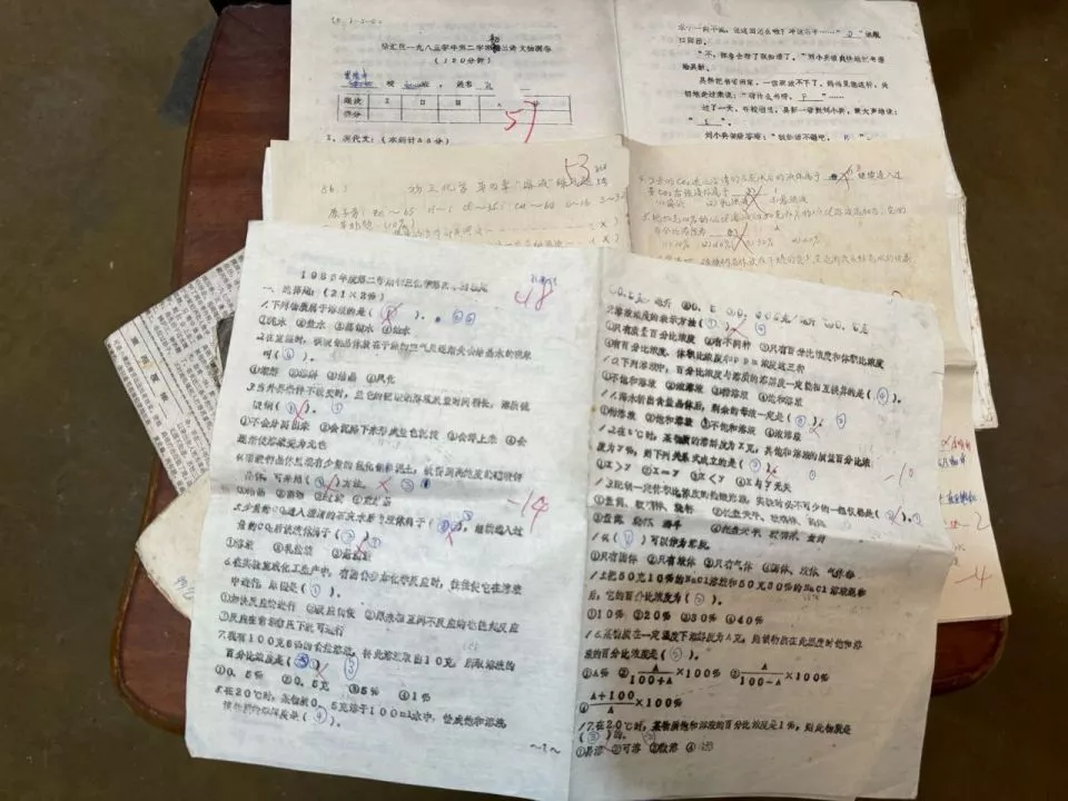 家中书柜保存着孔灵的初中试卷。陈媛媛 摄