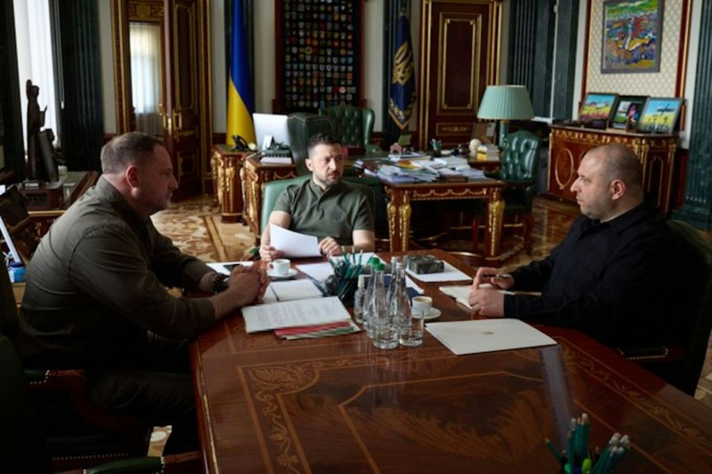 2025年8月3日,圖為澤連斯基在社交平台發布圖片,他與國家安全與國防委員會主席烏梅羅夫(Rustem Umerov)和烏克蘭總統辦公室主任葉爾馬克(Andriy Yermak)進行會談。(X@ZelenskyyUa)