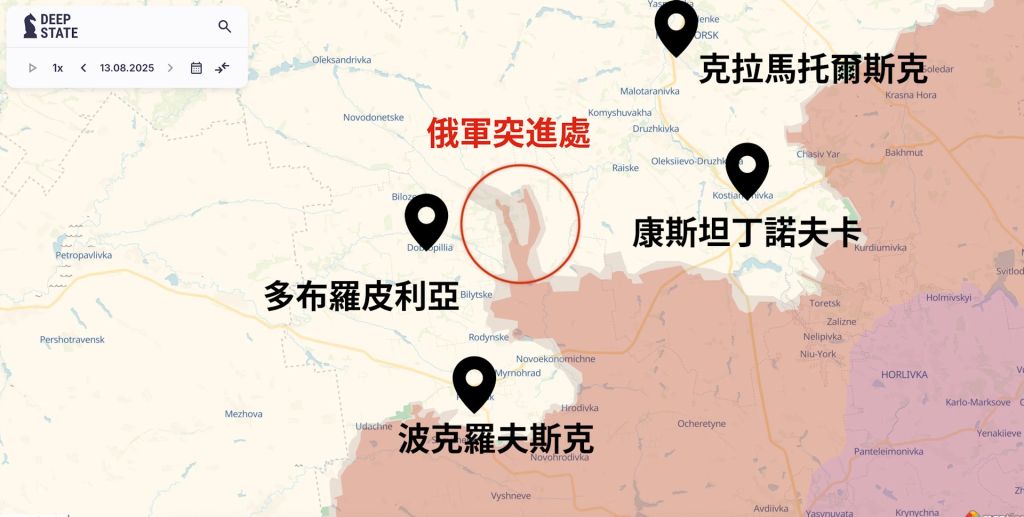根據和烏克蘭軍方有聯系的DeepState網站,在8月11日至12日之間,俄軍突然在頓涅茨克兩個前線城市康斯坦丁諾夫卡(Kostyantynivka)、波克羅夫斯克(Pokrovsk)之間向前推進了10至15公裡,速度為一年多以來所未見。