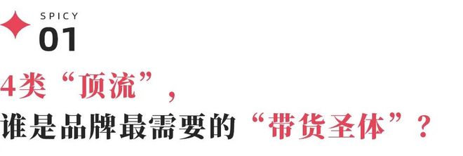 一个真正能让带货落地、实现品效销合一的“顶流”,绝对是行业稀缺品。剁椒Spicy盘点发现,如今的“顶流”基本可分为四类:1、明星运动员;2、耽美明星;3、剧综新贵;4、老牌顶流。