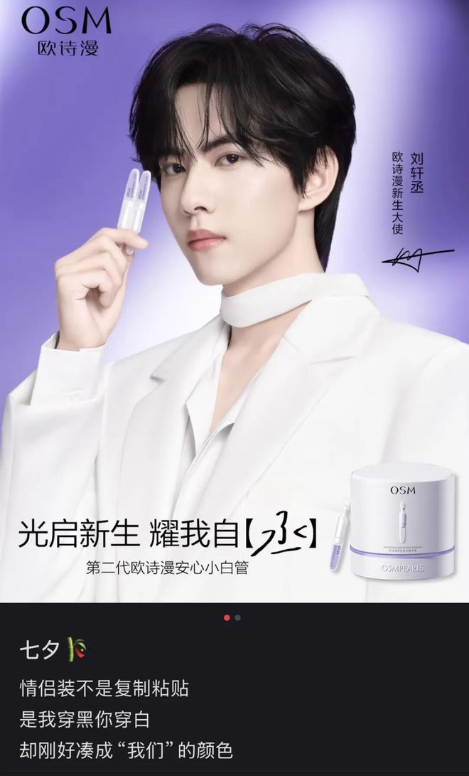 对快消品牌而言,这相当于握着一批“召之即来”的消费群体。典型如某环大陆剧集的双男二刘轩丞与展轩,便凭借这一效应从“小透明”轻松跻身第二梯队。刘轩丞的欧诗漫代言单日500万GMV,展轩与卡姿兰的合作单日400万GMV,甚至两人不同代言海报中的细节互动,都能成为粉丝持续“磕糖”的素材。