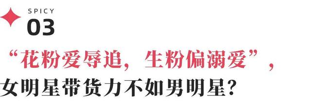 这也解释了为何 “女艺人能带货的本来就不多,更多是作品粉和事业粉”,甚至大部分有购买力的花粉,都源自艺人此前的 “CP体质”,女艺人的商业转化,天然更依赖情感附加,而非粉丝的主动氪金冲动。