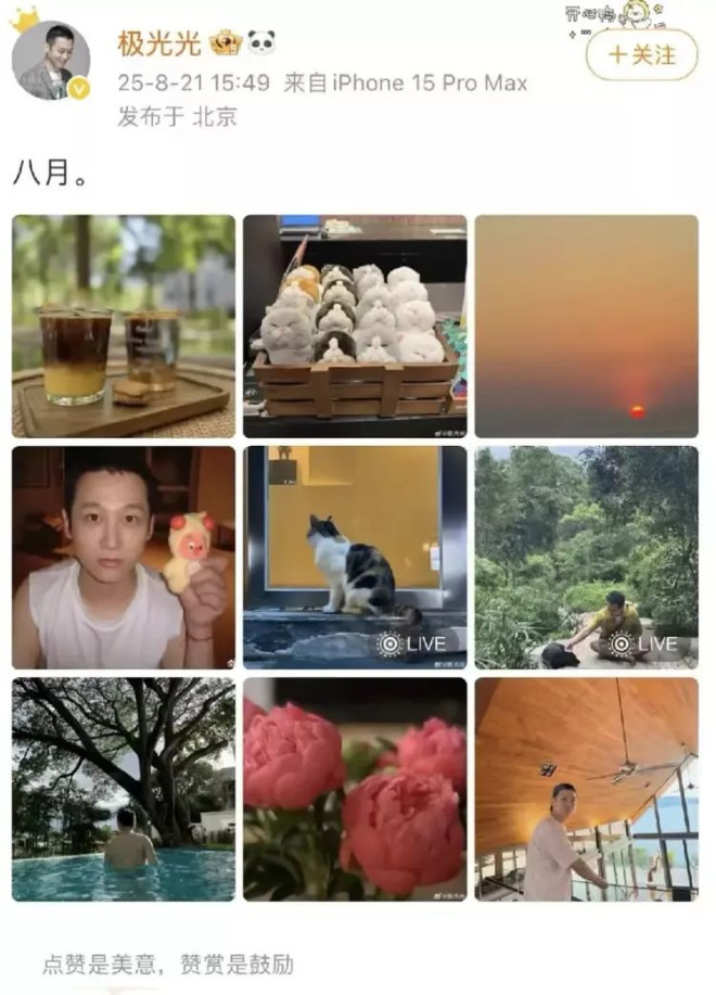 他曾晒出小区的外景照片,今年8月份的自拍里,房间内景也和于朦胧坠楼小区的房间布局一样。如今很多网友猜想于朦胧坠楼房子的屋主就是极光光。