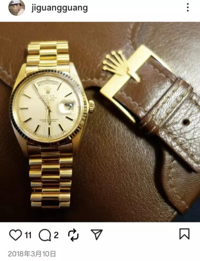 这还没完,网友还发现极光光有多快劳力士手表,早在10年前他就秀出了劳力士手表,称是给自己28岁的生日礼物。之后的几年里,极光光又陆陆续续晒出了新表,很显然是劳力士收藏者。而恰好,娱记曝于朦胧遗体的口袋里也有两块劳力士手表,当然这些信息之后又被编辑掉了。