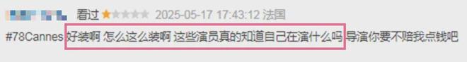 不少人生气地称该片是“戛纳史上最装X的华语电影就此诞生”,表示“电影从头到尾不知道在干嘛”,“很难理解”,评价电影“好装啊,演员真的自己在演什么吗”?