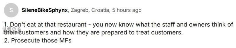 “1. 别去那家餐厅吃饭 —— 现在你知道那些员工和老板是如何看待顾客、又准备怎样对待顾客了。