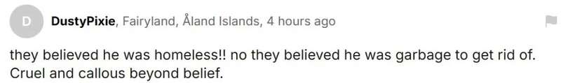 “他们以为他无家可归!!不,他们以为他是应该被处理掉的垃圾。简直残忍冷酷到难以置信。”