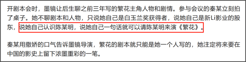 此前古二曾爆料过秦雯曾借“能请来陈道明演戏”为噱头,来抬高自己地位,但两相拉扯了半天,陈道明也没请来。