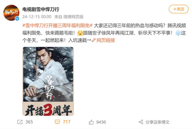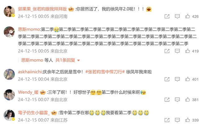 直到2024年12月份,《雪中悍刀行》官微罕见的发布一条“开播三周年福利限免”活动,让原本死了心的《雪中》剧迷们又沸腾了起来,频频询问第二季在哪里?