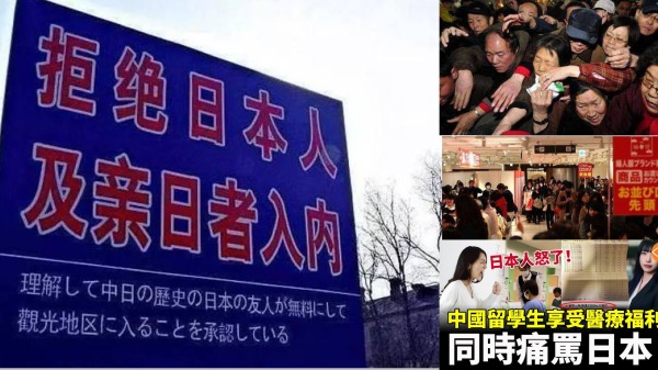 左图为仇日引发的政治跟从,右图是中国人在日本抢购以及两面人的情怀(图片来源:网络截图)