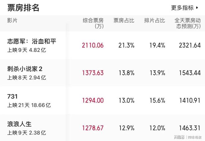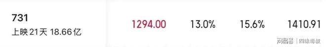 此外,上映21天尚未在豆瓣开分的《731》总票房终于突破了18亿。