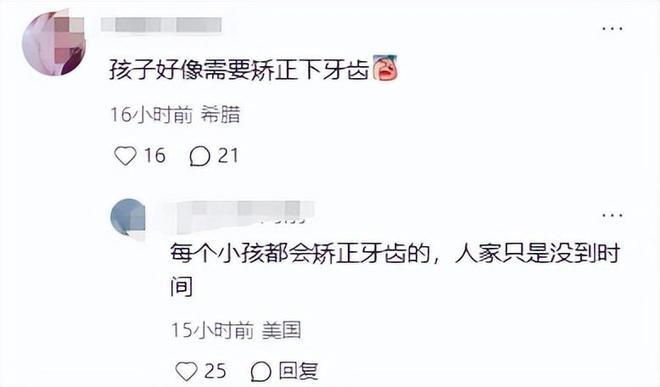 好在大部分网友还是理性的,大家觉得 “大人之间的过往早就翻篇了,孩子是无辜的,重点不该放在‘晒没晒正脸’上,而是孩子的健康 —— 比如牙齿问题,早点解决才是正事”。