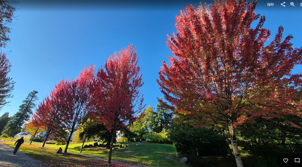 雖然已是十月中旬,但大溫主要是金黃色的樹葉,真正紅透的當屬本拿比的Tyndale Crescent 街了,街道兩側都是高大的紅楓樹,顏色非常鮮艷。根據目前的樹況,應該還能維持一周左右,具體地址是:7543 Tyndale Crescent,Burnaby