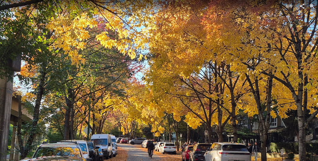 現在是十月金秋時節,大溫的很多街道都出現了五彩斑斕的秋色,尤其是本拿比的兩條網紅楓葉街非常有名,昨天(10月13日)小編去時都是人頭攢動。