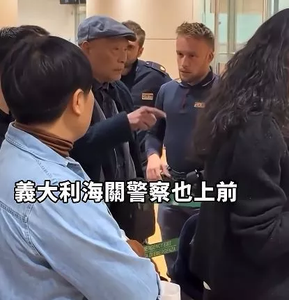其他中國旅客聞聲呼應,有人鼓掌附和“歧視中國人!”,現場氣氛緊張。隨後,意方執法人員隨後上前以意大利語詢問,但老翁怒氣未消,持續用中文抱怨。排隊旅客中,有人掏出手機錄影記錄,有人低頭避開紛爭,也有人則支持老翁的抗議。目前尚不清楚該游客最終是否順利通關。