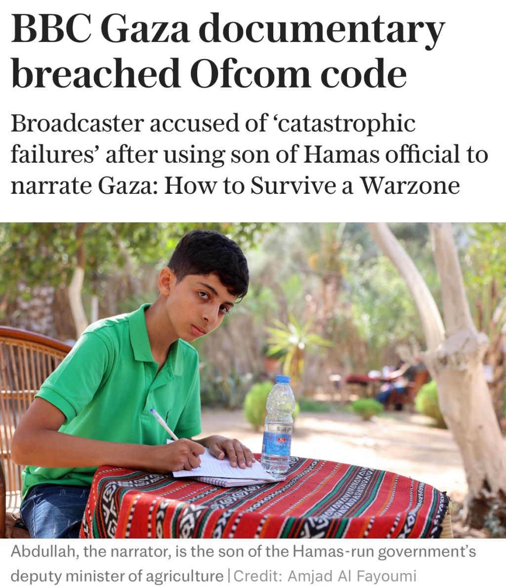 英國廣播公司新聞網(BBC News)報導,通訊管理局裁定,BBC因未揭露該紀錄片由哈瑪斯(Hamas)官員之子擔任旁白的事實,構成「嚴重違反」廣播規范。通訊管理局已下令BBC於黃金時段播出相關裁定聲明。