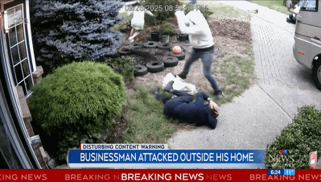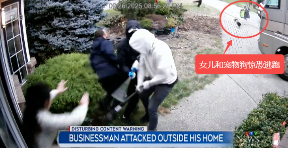 一位华人老板凌先生(John Ling,音译)在自家门口被两名蒙面男子持棒球棍暴力殴打,全程被监控拍下。