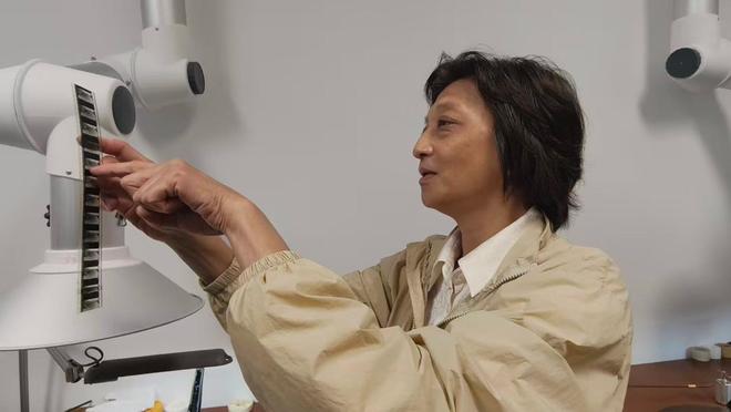 和胶片打了一辈子交道的上海电影技术厂高级修复顾问胡玉娥,如今已经是退休返聘的第五年。此次影展上放映的多部上映老电影,当年的剪辑工作她就曾经手。如今和曾经一起工作过的“老伙计”们重逢,重新校正这些老胶片的色彩,让她感慨又亲切。她还记得当年为电影《牧马人》做后期,谢晋导演对颜色的要求极高极细,而如今的修复工作中,她也秉持着“修旧如旧”的理念,“把我记忆里,谢导对电影的要求,当时电影的颜色,重新调校出来。”