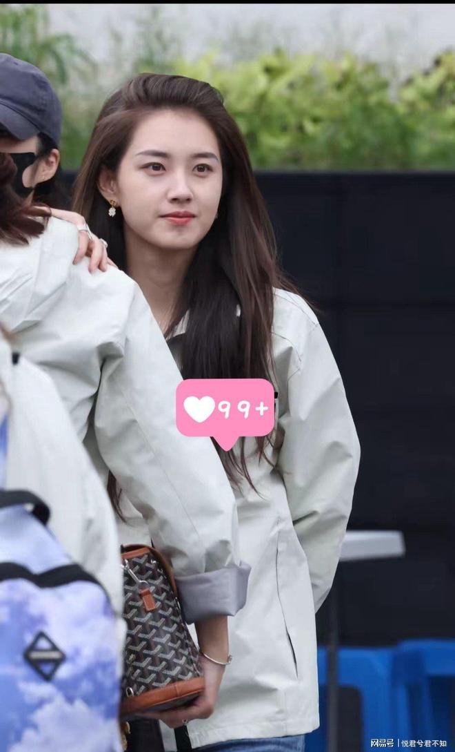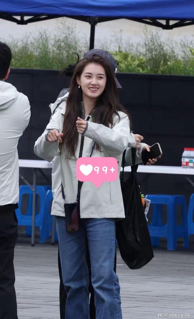 当天她就穿了件最简单的剧组T恤,没化妆,就戴了对小耳饰,可状态好得晃眼。