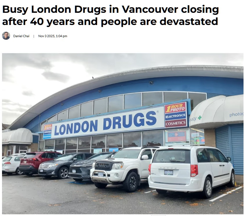 (加西网综合)温哥华的零售业格局正在不断变化,闹市区一家生意兴隆的伦敦药房(London Drugs)将于明年初停止营业。