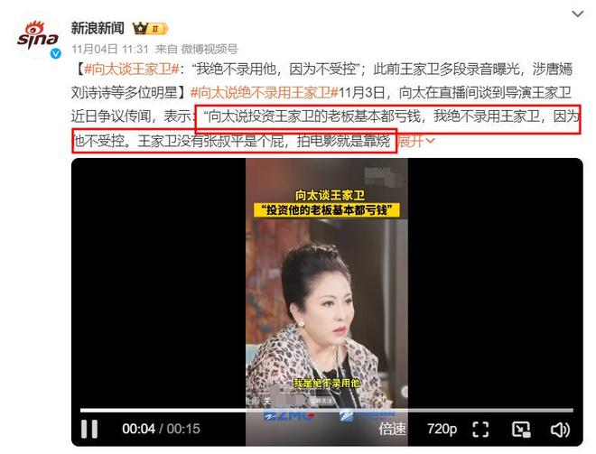 向太絲毫不怕得罪王家衛,她說王家衛不受控制,她絕不會錄用王家衛,她還說投資王家衛的老板基本都虧錢。