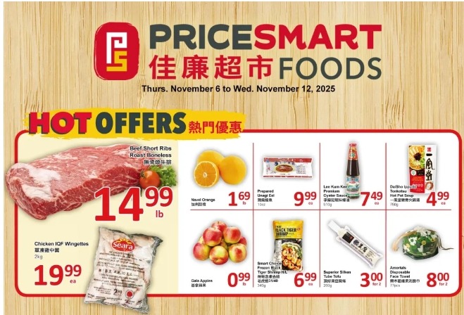 佳廉超市PriceSmart本周特價 :11月06日至11月12日