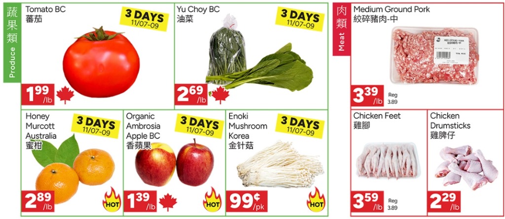 大統華T&T 超市BC省分店- 本周特價:11月07日至11月13日