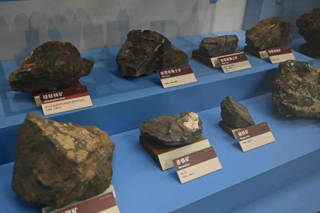 中國礦區采集的稀土礦物樣本,陳列於北京某地質研究所。 VISUAL CHINA GROUP, VIA GETTY IMAGES