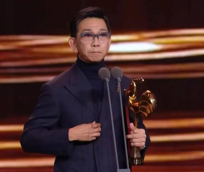 拿到了金鸡奖的袁富华就集齐三金了,他提到自己已是耳顺之年,上台领奖依旧激动,含泪发表感言获得热烈掌声,张艺谋举起手为他鼓掌。