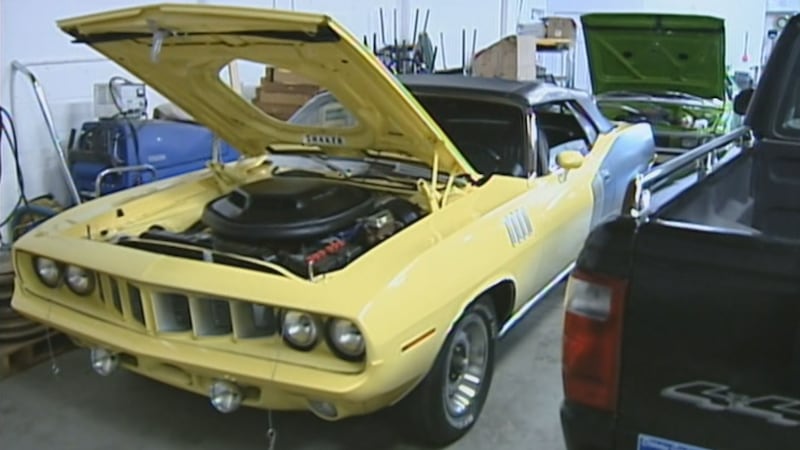 他擁有好幾輛車,但萊西克擁有這輛或許是所有高性能汽車中最具傳奇色彩的:一輛極其罕見的 1971 年款黃色和黑色普利茅斯“庫達”敞篷車的克隆版,配備 426 Hemi 發動機。