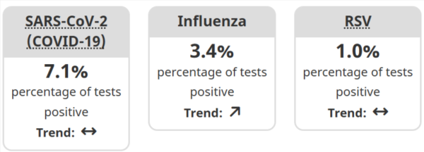 BCCDC总结指出:“近几周急诊和初级保健因呼吸系统疾病就诊的比例有所上升,但趋势与上一季同期相当”。
