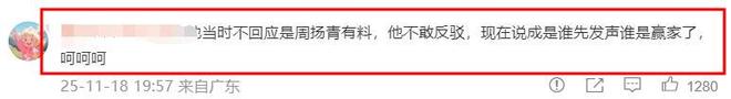 还有网友说“他当时不回应是周扬青有料,他不敢反驳,现在说成是谁先发声谁是赢家了,呵呵呵”。