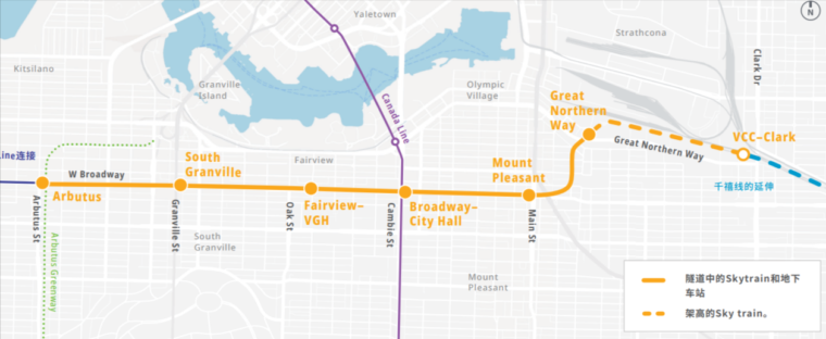 加西网编译报道:百老汇地铁项目是温哥华千禧线的一个延伸线路,全长5.7公里,从VCC-Clark站延伸至百老汇街和Arbutus街。