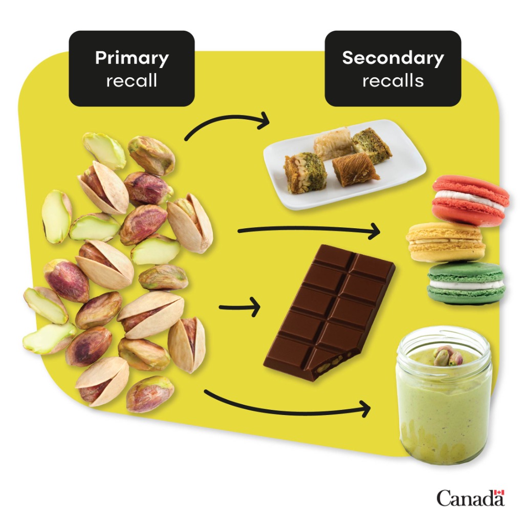 CFIA表示,由于后续调查和额外检查活动,已对使用被召回开心果的相关产品发布了附加二次召回通知。