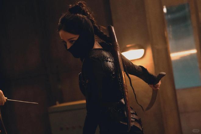 夜晚化身疯刀传人,一身劲装,眼神凌厉,动作干脆利落,又美又飒。