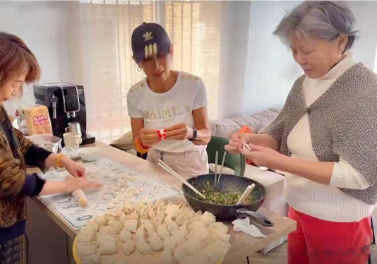 視頻裡,她和好友一起包餃子,可是她和以往完全不一樣。