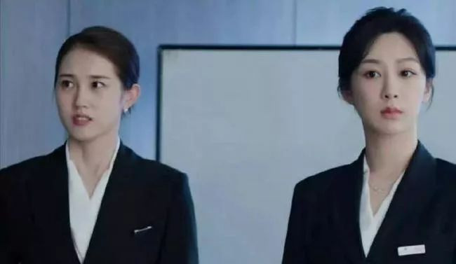 跟杨紫在《承欢记》同框时更有意思,俩人都穿黑西装扎丸子头,杨紫是顶配待遇的女主,她就演个叫 “莉莉” 的同事,台词没三句。