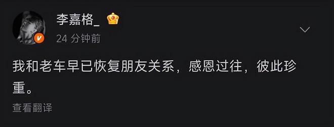 李嘉格和车澈都已经发文,表示已经恢复朋友关系。