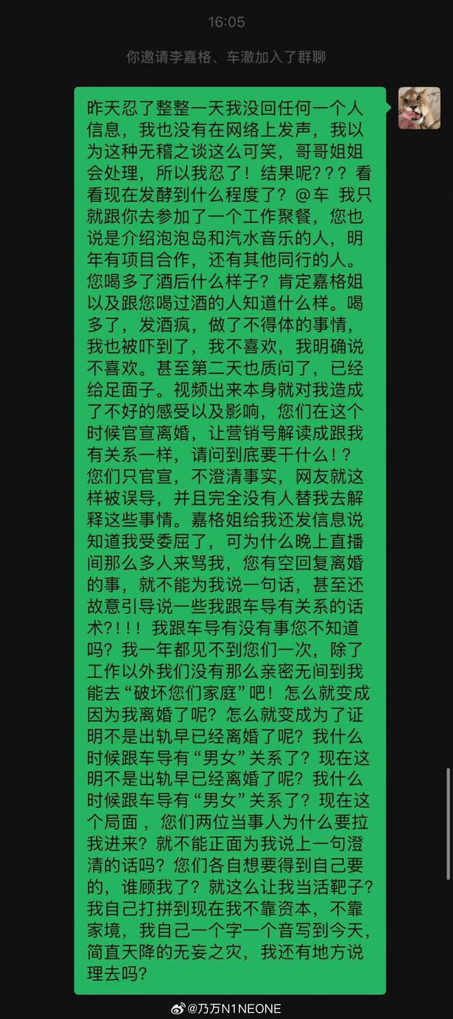 乃万直接把车澈和李嘉格拉到了一个群里,公开喊话车澈和李嘉格,希望他们帮自己澄清。