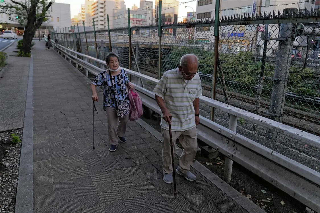 兩位老人在日本東京巢鴨附近散步 資料圖(圖源:新華社)